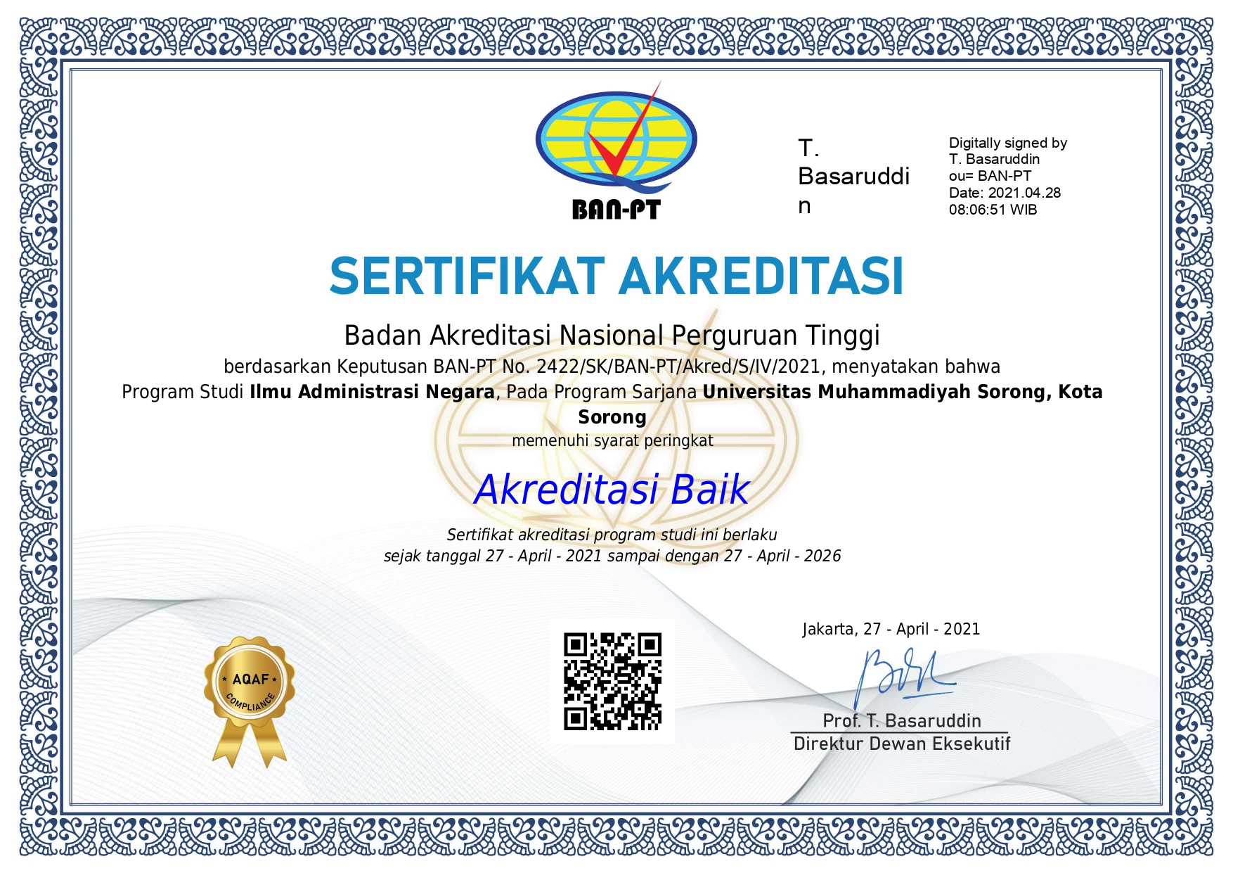 Program Studi Ilmu Administrasi Negara Fakultas Ilmu Sosial dan Ilmu Politik Universitas Muhammadiyah Sorong (UNAMIN) merupakan program sarjana (S1) yang telah terakreditasi Baik berdasarkan SK BAN-PT Nomor 4447/SK/BAN-PT/Ak-PPJ/S/VIII/2020 dan memberikan gelar Sarjana Ilmu Administrasi Publik (S.AP.) kepada lulusannya. Program Studi beralamat di Jl. Pendidikan No. 27, Kelurahan Klabulu, Distrik Malaimsimsa, Kota Sorong, Papua Barat Daya, dan dapat dihubungi melalui emsil adm@um-sorong.ac.id.